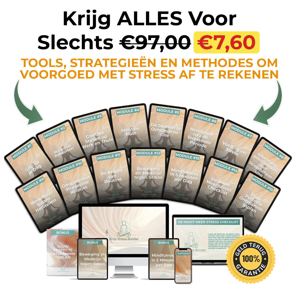 En voor een beperkte tijd kan je ALLES wat je op deze pagina ziet krijgen voor de belachelijk lage prijs van slechts €97,00 €7,60.